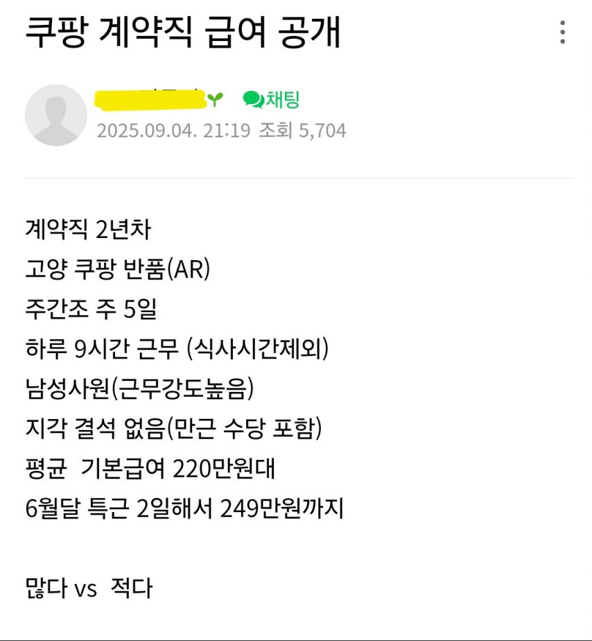 쿠팡 계약직 2년차가 공개한 월급